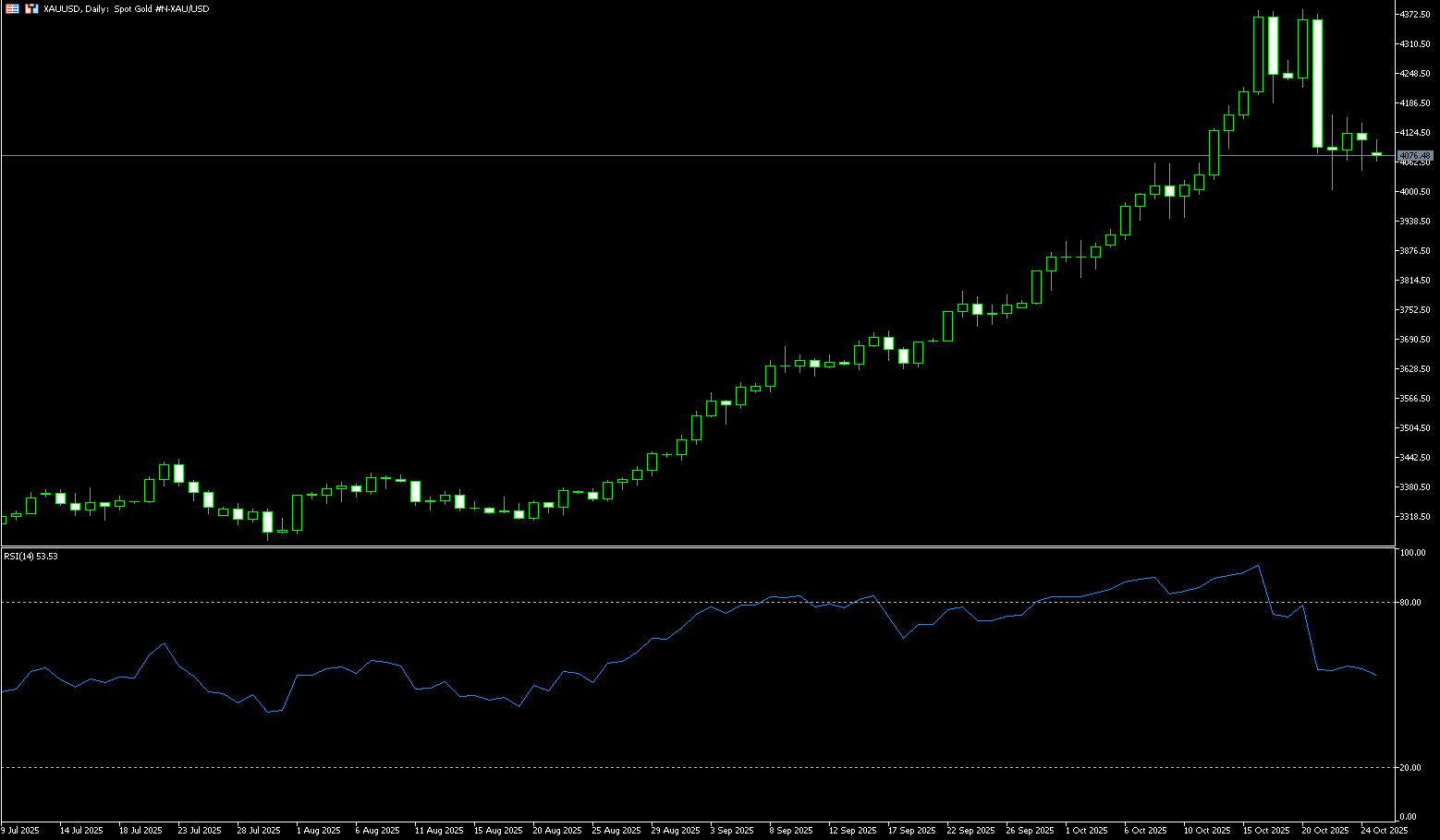 Gold prices fell to around $4,000 per ounce last week, a drop of more than 5% and the largest intraday drop in five years. Gold ended its nine-week rally, rebounding to around $4,100 before the weekend. It came under heavy selling pressure after hitting record highs several times over the past few trading days last week. The decline coincided with significant outflows from gold-backed ETFs, which saw their largest single-day drop in holdings in tons in five months. Despite this, gold is still up about 55% year-to-date, supported by ongoing trade tensions, with focus on trade negotiations between President Trump and President Xi at the end of this month. Geopolitical risks remain after the United States imposed new sanctions on Russia in an effort to pressure Moscow into a ceasefire agreement in Ukraine. Meanwhile, geopolitical factors have been a significant driver of gold price fluctuations. The Trump administration imposed sanctions on Russian oil giants Lukoil and Rosneft in response to issues related to the Ukrainian war, a move that reignited market demand for safe-haven assets. The sanctions have not only exacerbated tensions in the global energy market, but have also indirectly boosted gold's appeal as a hedge against geopolitical risks. In addition, Market expectations that the Federal Reserve may cut interest rates twice more before the end of the year continue to support gold bullion.