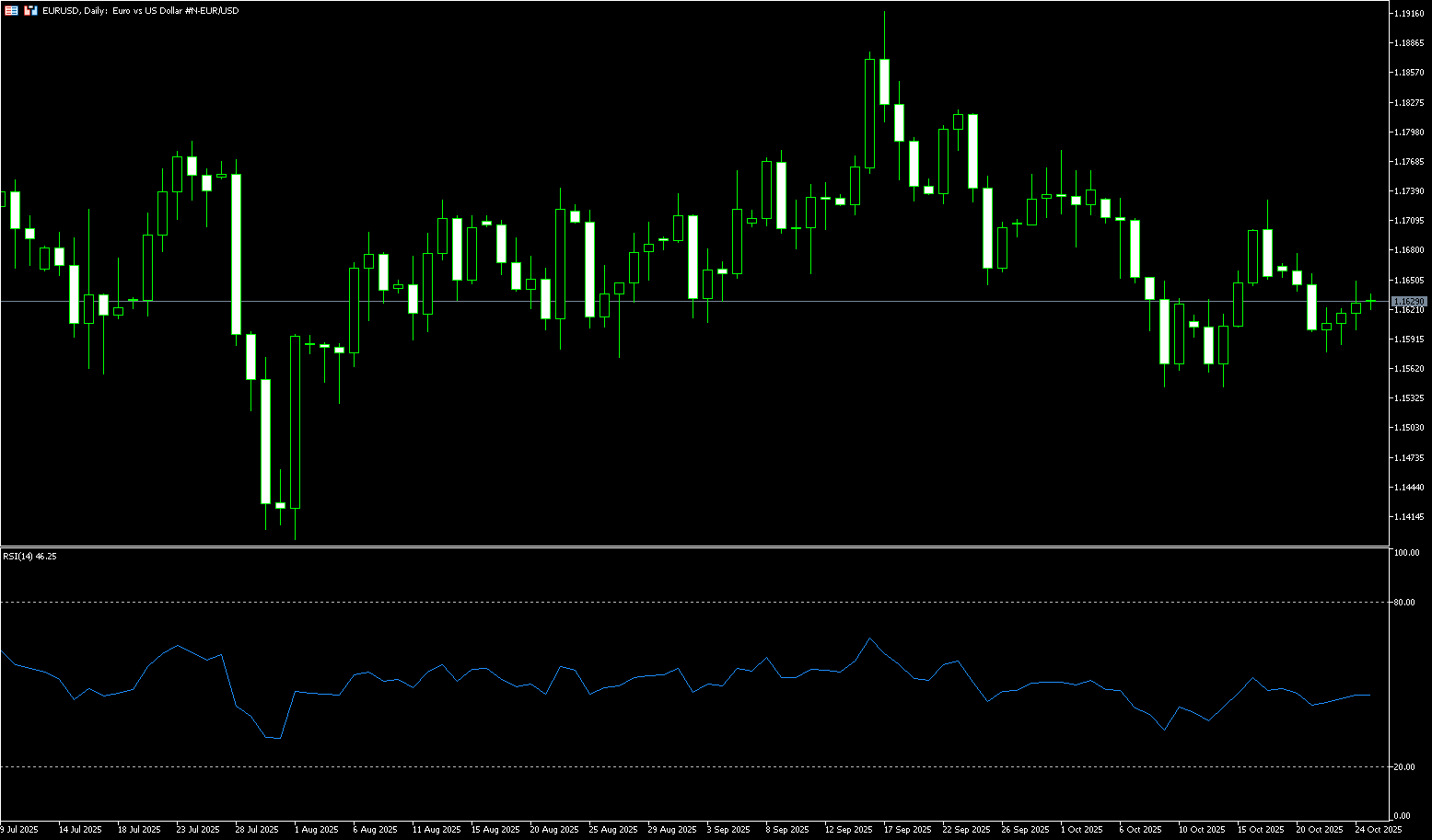 On the daily chart, EUR/USD is currently trading around 1.1625, with minimal weekly fluctuations, trading within a narrow range between 1.1675 and 1.1576. The bearish 20-day SMA (1.1654) has slipped below the 100-day SMA (1.1659), forming a bearish "death cross" pattern. Meanwhile, the 14-day RSI (Relative Strength Index) is at 46.30, just below the neutral 50 line, indicating that sellers are attempting to gain control in the short term, suggesting further declines are possible. Consistent with the prevailing bearish momentum, immediate resistance lies at the 20-day SMA (1.1654) and the 100-day SMA (1.1660). A break below this level would target the 1.1700 level, followed by the October 1 high of 1.1780, and ultimately the 1.1800 level. Initial support lies at last week's low of 1.1576. A break below these levels would open the door to the 150-day SMA (1.1520) and further towards the 1.1500 level.
