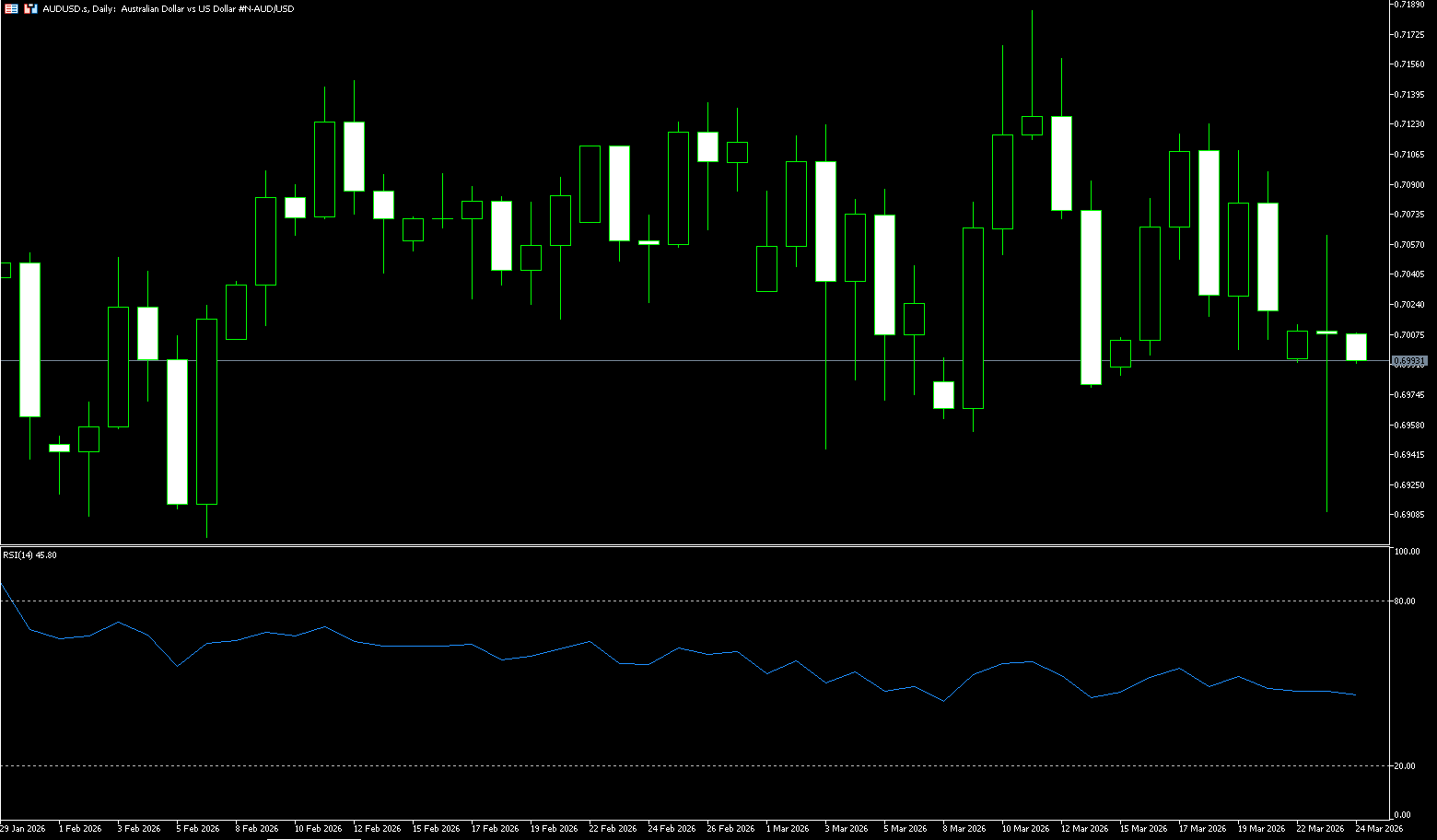 The Australian dollar initially weakened to around US$0.69 early in the week, extending last week's losses and reaching its lowest level in eight weeks, as a stronger US dollar and falling Asian stocks pressured the risk-sensitive currency. Later, the pair rebounded above 0.70 after US President Trump instructed the War Department to postpone a military strike on Iranian power plants, as the US dollar received broad support from safe-haven demand amid escalating tensions in the Middle East. The decline in Asian stocks further pressured the Australian dollar, reflecting concerns about the potentially broader economic impact of the Middle East conflict, which dampened demand for the commodity-linked Australian dollar. Domestically, investors are now awaiting Wednesday's inflation data after the Reserve Bank of Australia narrowly approved a rate hike to 4.1%. This marks the first consecutive rate hikes since mid-2023 and reverses two of the three rate cuts last year.